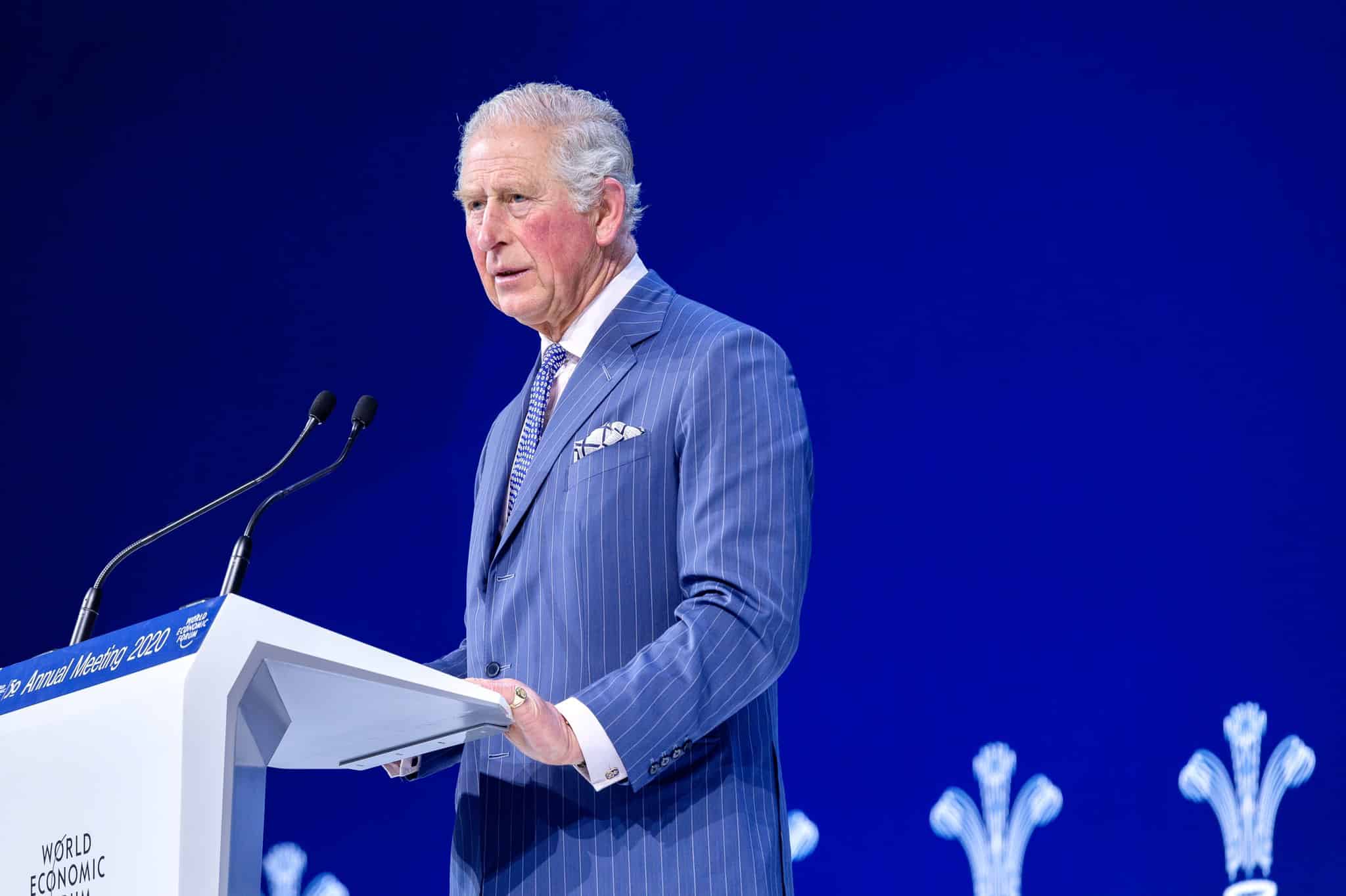Property for sale by Auction A man in a blue pinstripe suit stands at a podium with “World Economic Forum” branding. He appears to be speaking or giving a presentation against a blue backdrop. The background features a pattern of elegant white symbols. Presented by World of Auctions